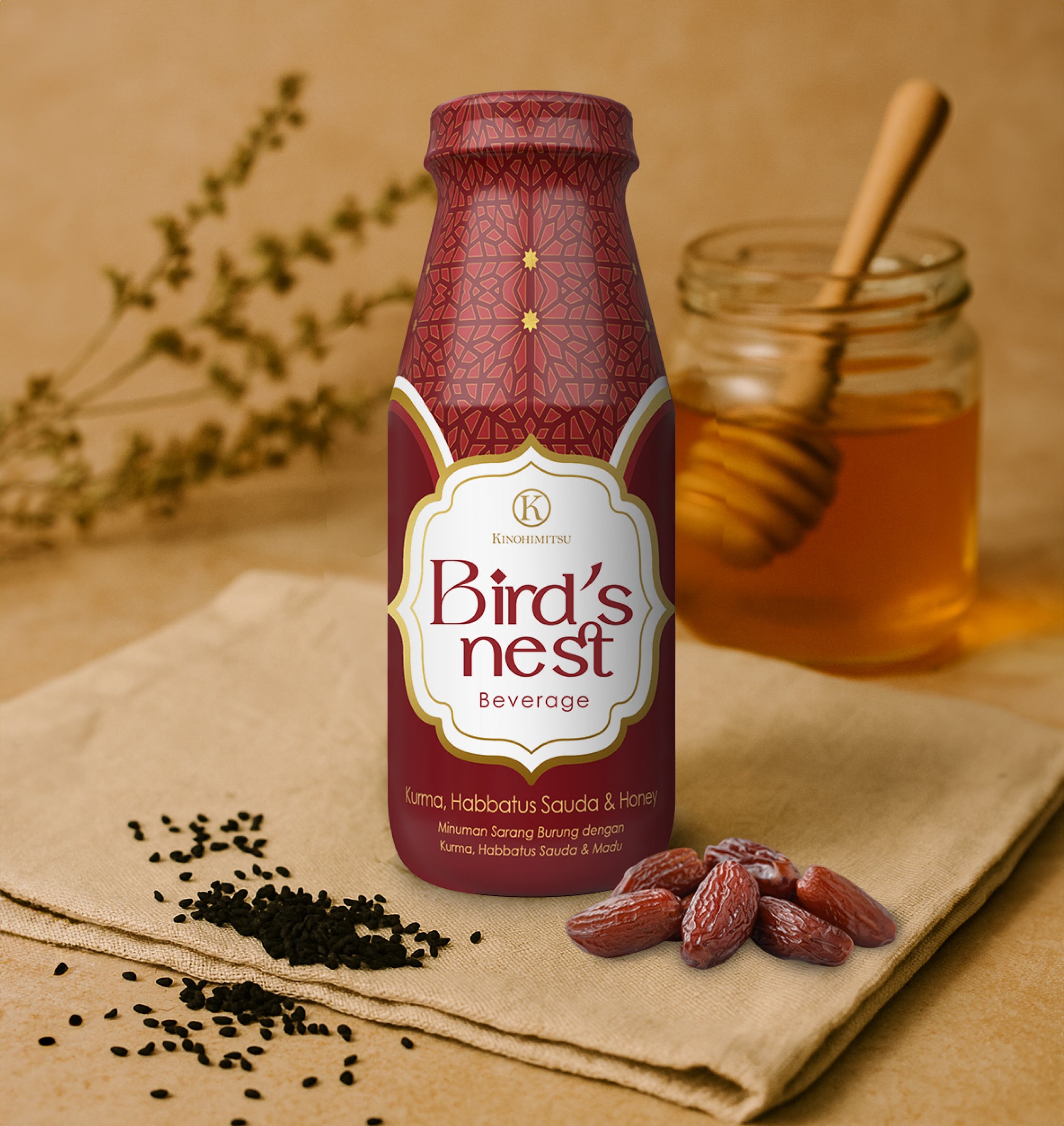 A nourishing blend of premium Bird’s Nest, Kurma (dates), Habbatus Sauda (black cumin), and Honey—crafted for wellness inside and out. This ready-to-drink formula delivers traditional goodness in a modern, convenient form, perfect for daily nourishment.