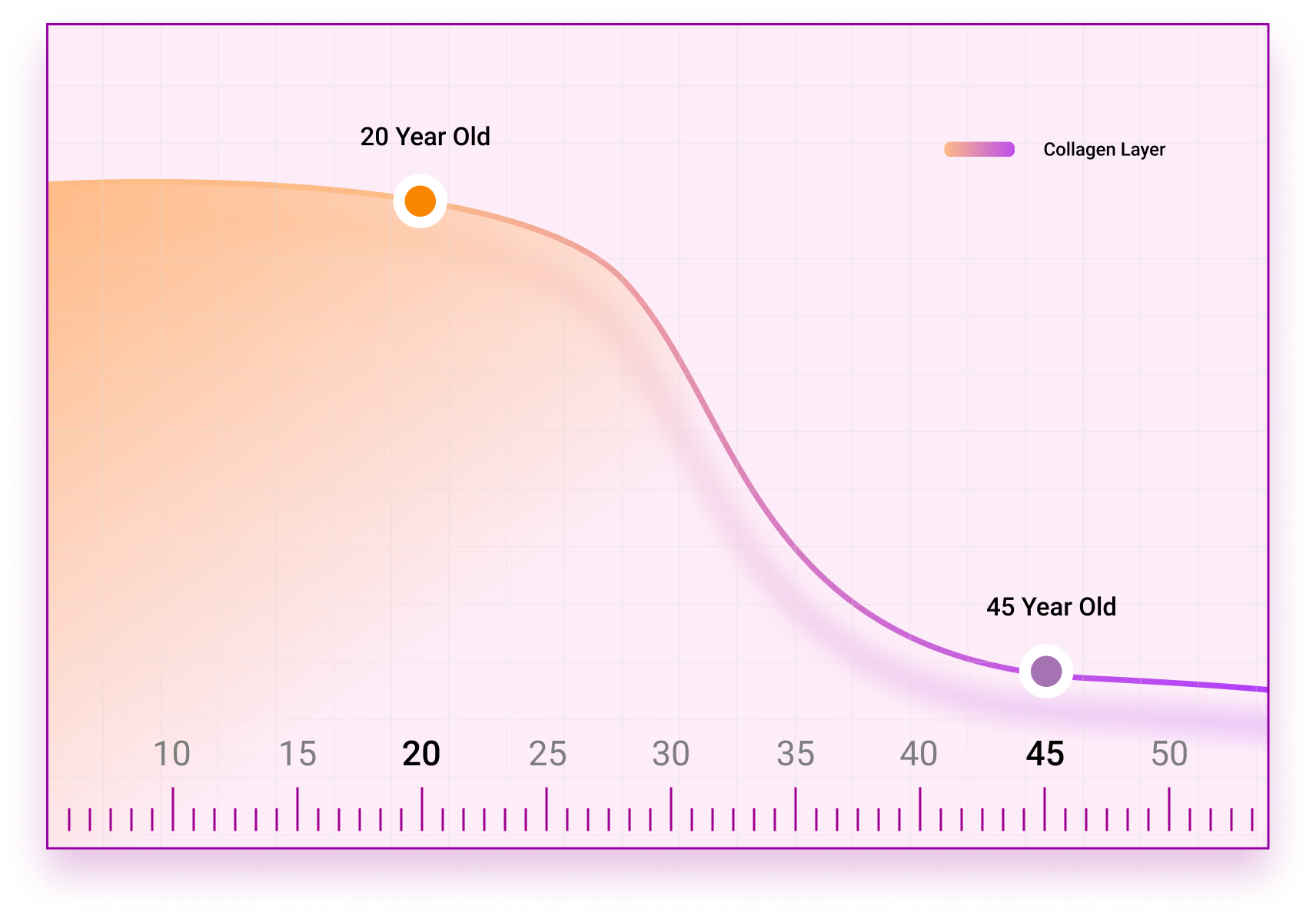 Starting at age 20, we lose about 1% to 1.5% of our skin’s collagen each year. By the time we reach age 45, we may have lost up to 30% of our collagen.